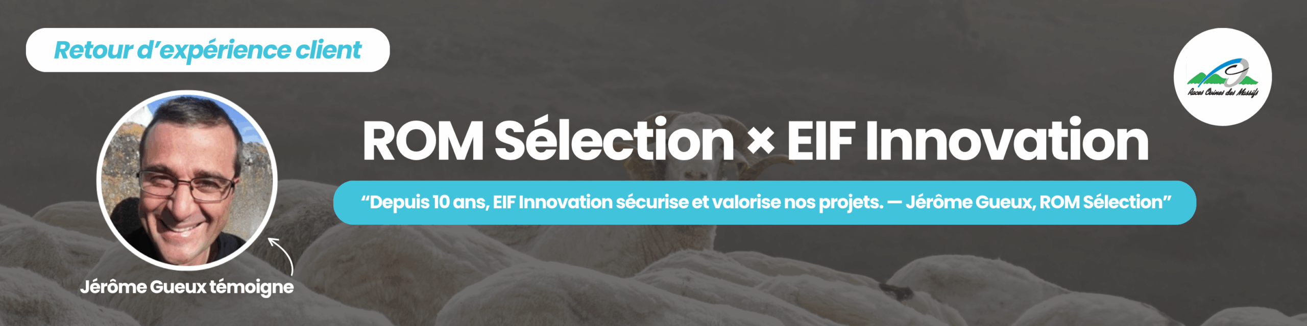 Depuis plus de 10 ans, ROM Sélection (Races Ovines des Massifs) bénéficie de l’accompagnement d’EIF Innovation pour sécuriser et valoriser ses projets de recherche et développement. Cette association, active depuis les années 1970, se consacre à l’amélioration des races ovines et des pratiques agricoles, alliant expertise technique et innovation. Avec une équipe composée d’ingénieurs, de